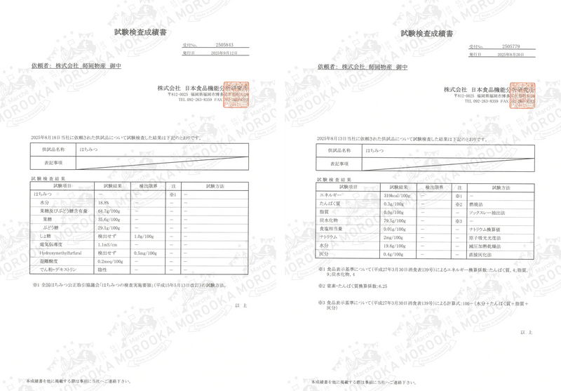 - 植物蜂蜜協会の基準と比較しても、水飴などを示す成分が極めて少ない高純度の蜂蜜であること